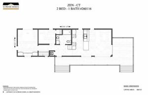 Condo- style finish mini-home, the Supreme Homes model include 2 bedrooms and 1 bathroom, and is called the “Zen.”